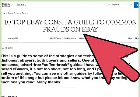 Familiarize yourself with common scams. If you don't know the playbook, you're liable to end up as a statistic in it. Most eBay scams that target buyers are centered around sending faulty products for an insane mark-up or simply not sending a product outright after payment is delivered. These kinds of scams happen most often with big-ticket items like cars or property, so if you must purchase a vehicle or something similar through eBay, be sure to insist on a mutual meeting place to do the transaction. You can avoid most basic scams by simply requesting more information about the item and the terms of the item's sale. If the seller is reluctant to give you information or they appear evasive, you should give the item a pass.