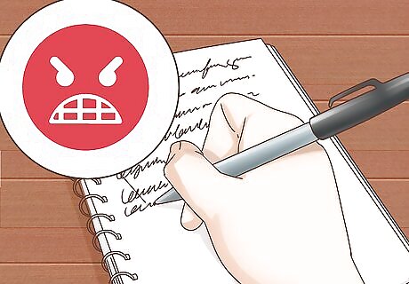 Write down any thoughts or underlying feelings. The thoughts you have can cause anger and even make anger build up over time. These thoughts can also influence your behaviors like shouting or punching a wall. Pay close attention to your thoughts before, during, and after anger experiences. Make notes in your diary. You might find yourself thinking, for example, “My wife doesn’t care about me." This thought may cause you to feel hurt, which is the underlying emotion beneath your anger. Instead of sharing your feelings with your wife, you might behave irrationally by do something equally hurtful to her. These thought patterns may worsen your anger and create a vicious emotional cycle of negative thoughts, feelings and behaviors.