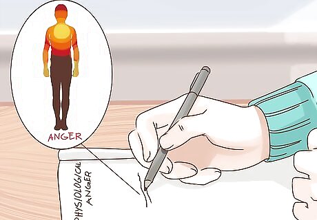Take note of your physiological reactions to anger. The experience of anger causes sensations in your body. Being aware of these sensations can help you recognize when anger is brewing and find healthy ways to cope. Common ways people experience anger in their bodies include: flushed face and ears, clenched fists, rapid heartbeat, sweating, and clenched teeth. You might also feel like your body is gearing up for a battle due to the fight-or-flight response.