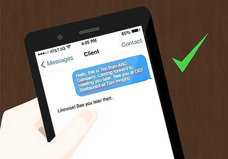 Be precise and as clear as you can. Before you start writing, think of what your interlocutor will need to know. Think of what you want to say and make it easy for the reader to answer you. If you're asked a question, offer a clear answer and make sure to use only one text. Try to anticipate a question. If you are asked where to meet, give a precise location and the time of the rendezvous. Make sure that your interlocutor knows who you are. Not everybody has your phone number saved. If you text someone you barely know, identify yourself at the beginning of the message.