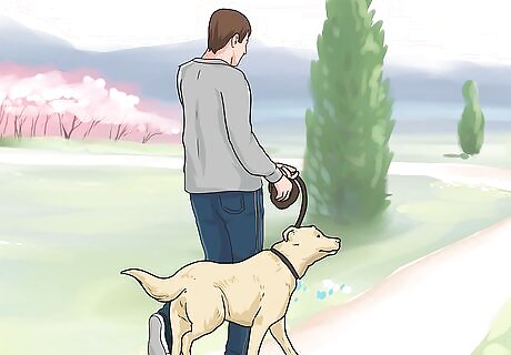 Don’t pet or talk to a guide dog. Don’t go up to someone just to pet their dog. If the blind person has a service dog, don’t spend more time with the dog than the person. It can be distracting if you pet or talk to the dog. Keep your attention on the person you’re talking to. Especially if the dog is on duty, don't interfere or distract it.