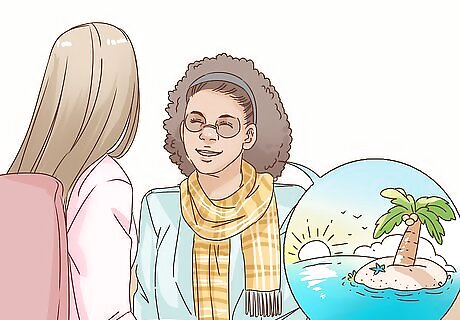 Start a meaningful conversation. Your conversation doesn’t have to start with anything pertaining to their blindness. Start a conversation the way you would with another stranger. If you notice them listening to music you enjoy, say, “I like that band, too!” If you notice a blind person traveling, mention that you enjoy travel as well. Show an interest in the person and ask questions that help get to know them. For example, you can say, “How long have you been working here?” or, “What brought you to the party tonight?”