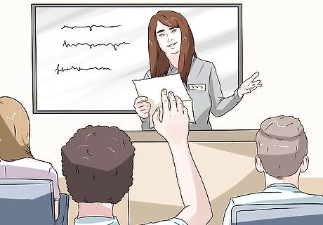 Ask questions. Coming up with questions stimulates the brain and makes the class more engaging. Many students dislike speaking in front of their classmates. It is understandable to feel uncomfortable or awkward, but at least give this strategy a shot. You might alleviate that boredom. During lecture, if the instructor speaks too quietly or too quickly, ask him or her to repeat the information. If the instructor leaves something out or is unclear when giving directions, ask for clarity. For example, if he uses a word you don’t know, ask what it means. If she does not mention a due date, ask her when the assignment is due.