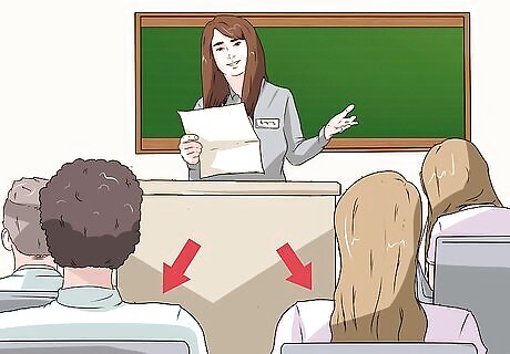 Choose your seat wisely. Avoid sitting by the door, especially if it is open and you can hear hall noise. Sit in the middle of the room toward the front. Make sure there isn't anything obstructing your view. Above all else, don't sit in the back! Teachers do not remember students who do that, which is not to your benefit.