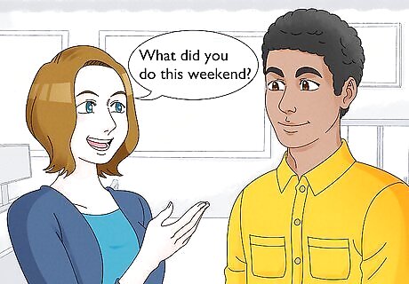Ask open-ended questions. If you want to get someone talking, the best route to doing that is asking a question that requires more than a "yes" or "no" answer. Open-ended questions don't limit the other person to a short answer. People like talking about themselves. Therefore, if you pose an open-ended question that invites them to tell you more about themselves, they will view you more favorably. For example, asking a close-ended question like "How was your weekend?" only leaves room for a short answer. On the other hand, asking "What did you do this weekend?" opens the floor up for the other person to share as much as he would like.