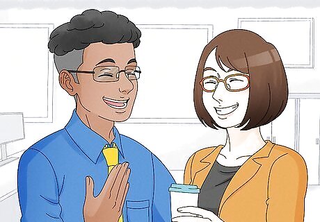 Smile. One of the quickest ways to capture a person's attention is to smile. It shows that you are approachable and friendly, as well as positive. Always have a genuine smile if possible, allowing it to come as naturally as you can. However, even a fake smile can induce positive feelings. A smile can be a friendly greeting. If you see someone you recognize, but don't have time to stop and talk, don't hesitate to flash a smile to at least show that you acknowledge his presence.
