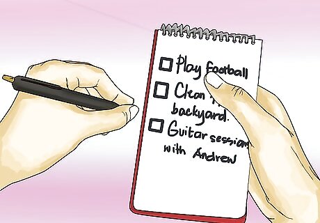 Keep a daily checklist. Each day, make a to-do list, or a schedule for your free time. The checklist can consist of things you have to do and also things that you want to do. When you complete a task, check it off. It will feel good. Your list can include things such as: Swim practice Volunteer for one hour at ASPCA Hang out with Angela Help mom with yard work Catch up on favorite TV show