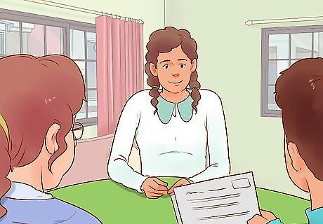Be polite, friendly, prepared, and on-time. All parents want their children to be watched by a babysitter who is trustworthy, mature, and reliable. So, when you have the opportunity to interview with a potential employer, put your best foot forward by arriving on-time and ready to chat. It’s fine to dress in age-appropriate clothes, but make sure they’re clean and relatively modest. You want to look a little mature for your age, but not like you’re trying to pretend you're an adult already (unless you are one!). Show some enthusiasm for the job by being friendly and engaging. If you’re nervous, take a few deep breaths before knocking on the door.