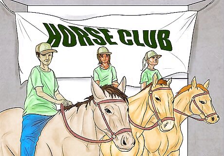 Join a club. Farm or horse clubs, such as 4H, can give you the opportunity to work with horses. Contact local farming clubs and organizations near you, to find out if you can join. Many times you can ask about volunteering opportunities as well. These groups are a great way to get hands on experience. Riding clubs are also a great way to get involved with horses.