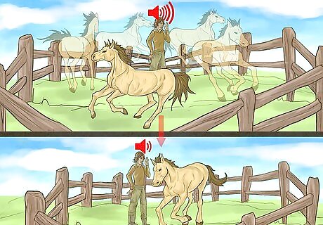 Listen to horses. Pay attention to the noises a horse makes, and what they signify. Pay close attention to its body language as well. If you are careful enough, it may tell you things that only "Horse Whisperers" can understand. Soon, you may understand the horse and it will understand you. The goal of this is establishing a kind of communication. Watch for the horse to drop its head in submission. Good chewing and licking are a sign that the horse is ready to be submissive as well.