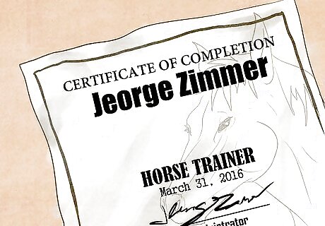 Consider getting a specialized two- or four-year degree. Many universities have programs that are designed to help people work with horses. Check with your local two year and four year colleges to see what types of programs they have available. Look into programs that emphasize horse training. Some schools also offer certificates in horse training, colt starting, and horsemanship that you can earn in just a year or two. Consider getting a degree in business if you are already an experienced horse trainer. A business degree can help you to understand how to manage and grow your business.