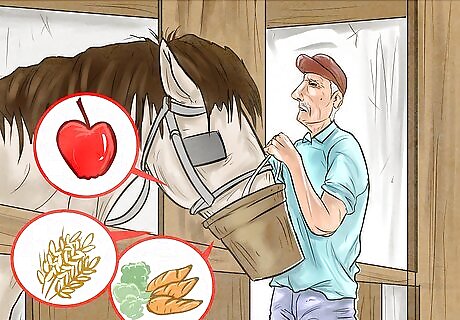 Feed horses. You have to start somewhere. This is a simple first attempt to work with a horse. Horses like apples, carrots, and oats among other foods. Make sure you give the horse the right feed! Feed the horse sugar cubes only as a treat. This interaction will help you to bond with ad understand horses.