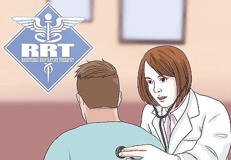 Find a school offering studies in respiratory therapy. Many two-year institutions offer respiratory therapy degrees. If you prefer not to study at a typical college or university, there are other places at which you can receive training: Locate a hospital offering formal respiratory therapy training. A few hospitals offer training programs, though they typically require strict prerequisites. Call your local hospital to see what experience they require for a trainee. Search for a vocational or technical school that has a respiratory therapy training program. Complete respiratory therapy training through a branch of the military.