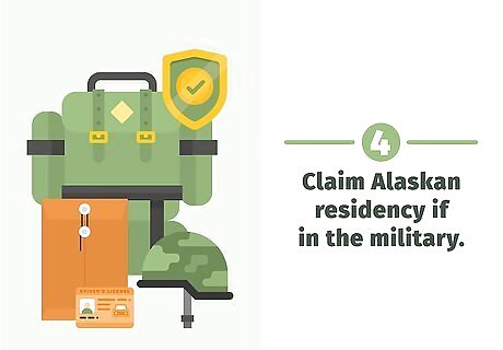 Claim Alaskan residency if in the military. Service members must formally claim Alaska as their residency with the military, and the paperwork must be processed by December 31 of the year before your qualifying year. For example, if you want to qualify as a resident for 2016, your paperwork must go through by December 31, 2015. Service members must also take a second qualifying step before July 1 of their qualifying year. The same steps apply to the military as to the general public: register a vehicle, register to vote, obtain a state driver’s license, or purchase or rent an Alaskan home. The spouse of a service member must take the second qualifying step before January 1 of the qualifying year.