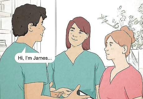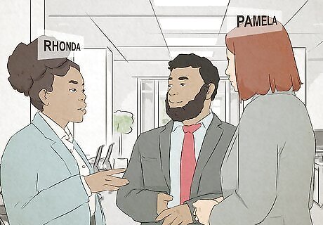 Introduce yourself to others with a smile. Smile and take time to introduce yourself in the elevator or to colleagues at the desks across from yours. This small step will help you start developing a relationship with co-workers and let them know you're part of the team. As you introduce yourself to others, make an effort to remember their names and positions. Write names and positions in your notebook to memorize. If necessary, note memorable physical features or personal characteristics to help you match faces with names. Quickly learning names shows others you value them.