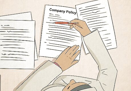 Read all employment information. Anything your boss or human resources department hands you to read over, do so promptly. Ask questions where you do not understand. Make notes of any rules you think will be difficult to remember or that you think you might break accidentally. For example, at most jobs, discussing pay is considered "unethical" and may be grounds for termination. Discussing politics and religion may also get you in trouble even if you do so off-the-clock.