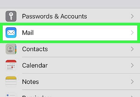 Scroll down and tap Mail. It's the blue-and-white envelope icon in the fifth group of settings, near the top.
