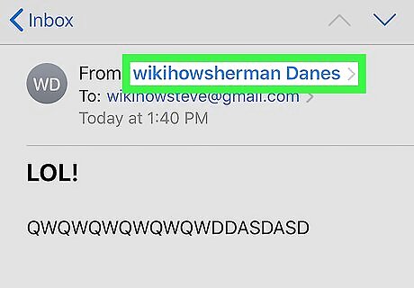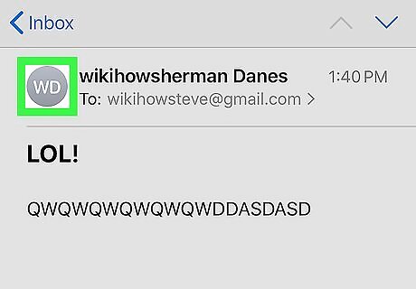 Tap the sender's profile image. This displays more details about the sender at the top of the message. If no custom photo is set, the image will be a circle containing the sender's initials.