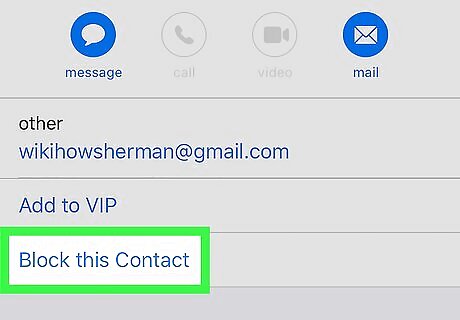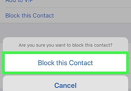 Tap Block this Contact to confirm. Now that you've blocked this sender, you will no longer be notified of their new messages upon arrival. However, they'll still appear in your inbox until you change a few settings. To remove a sender from the Blocked list, go to Settings > Mail > Blocked, swipe right on the sender, and then tap Unblock.