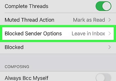 Scroll down and tap Blocked Sender Options. It's in the "THREADING" section.