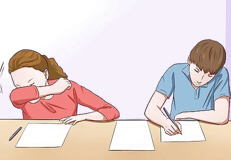 Sit away from classmates if possible. If you're having a particularly sneezy day, try to lessen the effect of your sneezes by sitting at the back of the class (or at least positioning yourself out of range of your crush).