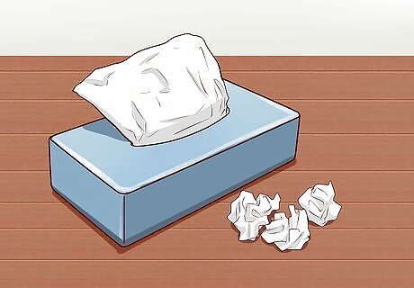Have plenty of tissue at hand. You can muffle your sneezes if you have a good handful of tissue. The more material mucus has to go into, the less your classmates are likely to see or feel it- and the less likely you are to experience the embarrassment of flinging a glob of snot at a cute boy or girl. Avoid using cloth handkerchiefs; not only do they trap mucus that then stays in your pocket, turning your pockets into a breeding ground for germs and infectious bacteria, they are actually frowned on culturally in some parts of the world. Dispose properly of your tissues. Put each tissue you use directly into the wastebasket-no one wants to see a pile of used tissues on your desk.