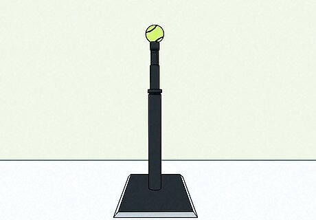 Begin the process by hitting balls from a batting tee. Breaking in a bat requires hitting a certain number of balls at half the maximum impact force before you move on to full-impact fast pitch hitting. The easiest way to bat at half-capacity is to bat off of a tee, rather than having someone pitch to you. If you don't already have a tee, buy one at a sporting goods store and keep it as part of your practice equipment. The alternative to using a tee would be hitting half-speed pitches or slow pitches. This would break in the bat effectively, but it might not be great for your batting form. Hitting half-speed pitches, especially when they have an arc, can mess with your form and timing.
