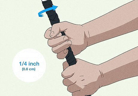 Rotate the bat ⁄4 inch (0.6 cm) between swings. Rotating the bat between swings will ensure that the entire barrel gets broken in. Many composite bats are marked around the diameter so you know exactly how much to turn the bat. It's important to rotate the bat during the entire breaking-in process so the bat won't get damaged or neglected in any one area.