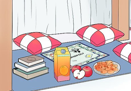 - Stock your fort with games, snacks, string lights, and a fan. That way, you can hunker down for a long time before you have to leave!