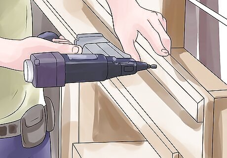 Assemble the box. Use a screwdriver bit with your drill to attach the ends of the window box to the bottom using rust-proof screws. Be sure to support the wood against something sturdy or have someone hold the lumber while you are screwing the pieces together. Place the front and back sections onto the bottom section to make sure that all of the pieces are cut to fit (the ends should all be flush with each other) before attaching the front and back pieces of the window box. Screw the front and back pieces to the bottom and sides of the window box.