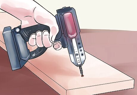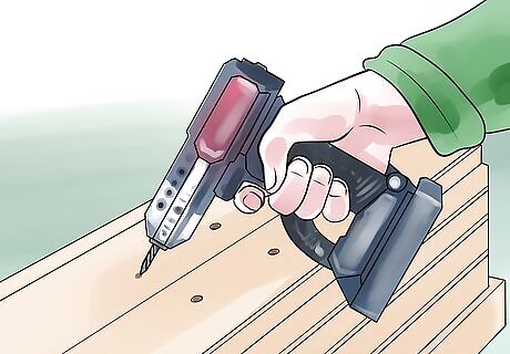 Drill guide or pilot holes into the lumber where you plan to screw the pieces of lumber together. Though there are devices that will allow you to drill the screws directly into the lumber, doing so can stress the wood and cause splits near the end. It is also easier to maintain control when drilling guide holes than it is to screw directly into the wood, especially when using hard woods.