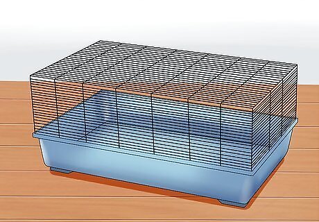 Get a cage and the appropriate accessories. Your guinea pig will need a cage as guinea pigs cannot be left out in a home unsupervised. You can find a cage at a pet store or online. Visit a well known retailer, like Petco or Pet Smart, or a reputable local business. You want to make sure workers can answer any questions you may have. Your guinea pig's home should be well-ventilated and big enough to store a food bowl, water bottle, and bedding. The minimum size requirement for one to two guinea pigs is 7.5 square feet of floor space. Bigger is generally better. This is especially the case if you have two or more guinea pigs, as territorial disputes are less likely in a larger cage. Having a bedding area is also important. Guinea pigs should have access to hay or grass to burrow in and guinea pig safe beds can be purchased at most pet stores. Make sure you designate a specific area of the cage for sleep.