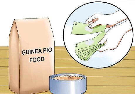 Buy guinea pig food. Before you purchase your guinea pig, make sure you have adequate supplies. Start with selecting a good brand of food for your pet. Guinea pig food is sold at most pet stores. You should choose a diet specifically made for guinea pigs, as you want to make sure they're getting adequate nutrition from their diet. In addition to their pet store food, guinea pigs also need to eat fresh vegetables and hay as their daily meal.