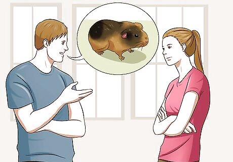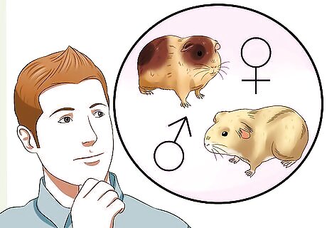 Decide on the gender. Before you make your selection, decide if you want a male or female. If you're purchasing guinea pigs in pairs, make sure to get two of the same gender. Two males or two females tend to get along better than guinea pigs of the opposite sex and there is no risk for accidental breeding. If you're new to guinea pigs, it's best to go with the safer route and choose same gendered pairs. You should never intentionally breed your guinea pigs. Males can be territorial. If you do get two males, opt for a larger cage to reduce tension over territory However, any time you have a pair of guinea pigs, be sure to duplicate things like hides and bowls so that there is no tension over resources when you first bring your guinea pigs home. Some places will refuse to sell mixed genders, as guinea pigs constantly breed and don't stop. Sows have a 20% mortality rate during pregnancy. It is highly frowned upon to breed as it can be dangerous for the sow and pups.