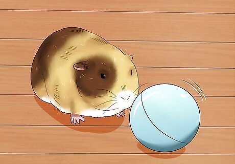 Find the right toys. Guinea pigs like to play, so make sure to have a variety of toys available for your pet before you move them into your home. Hidey houses are one option, which are small houses made of wood or cardboard that can be placed in a guinea pig's cage. They can be purchased online or you can make your own hidey house using cardboard. In general, you should have one hidey house for the each of your guinea pigs plus one extra one. This reduces fighting. Small balls can be purchased at pet stores, which guinea pigs love to throw and chase. It's safer to go buy a toy specifically marketed for guinea pigs as the material used in other pet toys might not be guinea pig safe. Guinea pigs also love to chew. Household items, like paper towels or toilet paper rolls, can be placed in their cage for entertainment.
