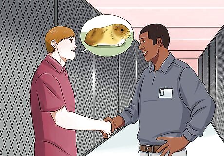 Think about a rescue. Guinea pig rescues help re-home guinea pigs that have been abandoned by former owners. Rescues tend to be more committed to finding quality homes for their pets, so you'll be taught how to care for your guinea pig if you go through a rescue. Websites like petfinder.com can help you locate guinea pigs in need of new homes in your area. Also, many animal shelters take guinea pigs and other exotic pets. Check shelters in your area to see if they take guinea pigs and if any are currently available for adoption. Adopting from a rescue is a process and the necessary work varies from shelter to shelter. Generally, there's some form of application in which you verify you're committed to providing a loving, safe home for your new pet. You may have to put down references. If so, choose other pet owners you have pet-sat for previously or people who have taken care of your animals in the past. Such people can confirm you're a responsible pet owner. Rescues can generally be trusted considering the workers there are mostly volunteers who put their energy and time towards raising ill-treated guinea pigs back to health and finding them loving homes. You can trust them to come home with a guinea pig which you know is healthy and you can leave confident that you haven't been misinformed.