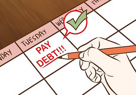 Eliminate debt. When lenders examine your credit score, they pay close attention to your debt-to-income ratio. Ideally, this should be under 43%, and this includes potential mortgage payments. Eliminating existing debt is important to improving your credit score, and your chance at purchasing your own home. Look at all of your credit card debts, and student loans. Try to make a dent in these payments, even if it means sacrificing in other areas of your budget. The more debt you can eliminate before applying for a loan, the better. Getting rid of credit card debts is a way of substantially improving your credit score rapidly. Many tools are available online, such as the ReadyForZero tool, that can help you manage your debt and bring overall debt levels down.