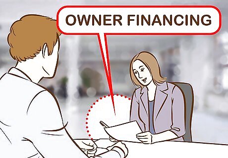 Consider owner financing. Owner financing is the financing of a property purchase directly through the person or entity selling it. It is a possible alternative if you cannot obtain funding through a conventional mortgage lender and the house owner is open to financing it for you (likely if they are having difficulty selling the property). In order to protect their own interests, the seller may require a higher down payment than a mortgage lender would (20% higher is not uncommon). Ask a lawyer to carefully look over the contract for you. In some cases, you can lose your down payment if the seller doesn't pay their mortgage and loses the house. Your contract should specify that the seller must pay their mortgage and any liens to protect you when you buy the house.
