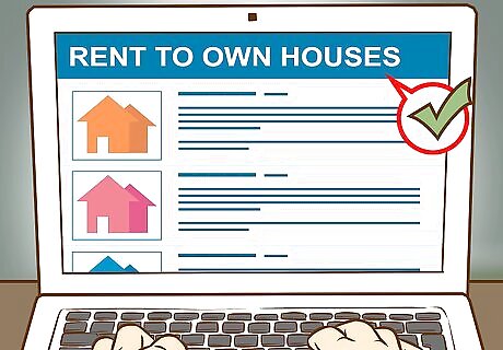 Consider renting to own. If you have a poor credit score that makes lenders wary of dealing with you, rent to own can be a good Plan B. This option however takes a good deal more patience, as it can take awhile to connect with the right professionals. In most cases, rent-to-own are contracts between the buyer and seller without the use of a lending institution. This makes such transactions riskier than just buying the house. It is a good idea to get an attorney to review the contract until the home is legally yours. An ideal agent should know the local market well, and be able to navigate any potential pitfalls. Pick an agent with a lot of experience in a specific area and a good reputation. Before signing anything, practice due diligence. That is, do a comprehensive appraisal of the home and your contract with the owner. Have the home examined for any potential problems to assure the homeowner isn't trying to shrug off a problem property on you, and have any contract you sign checked by a third party. The main downside to renting to own is that, in the long run, the process is more expensive. Another con is that, oftentimes, contract specifics are fuzzy and added interest rates, fees, and payments mean many would-be owners get fed up and give up on owning the home. Work with owners and real estate agents you trust if you go this route.
