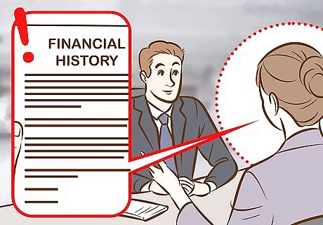 Explain your financial history. Lenders understand extenuating circumstances can affect your financial situation or that sometimes bad credit is a result of a one time issue that you've moved past. When applying for a loan, be prepared to explain any bad marks on your credit score. Get as much supporting documentation as you need, such as medical reports, pay stubs, letters from bosses, and bank statements. This can explain delinquent payments or accruing a heavy amount of debt. When speaking to a lender, give them the full story. Ask upfront about any concerns they may have regarding your history, and be prepared to give specifics as to what led to your current credit score.