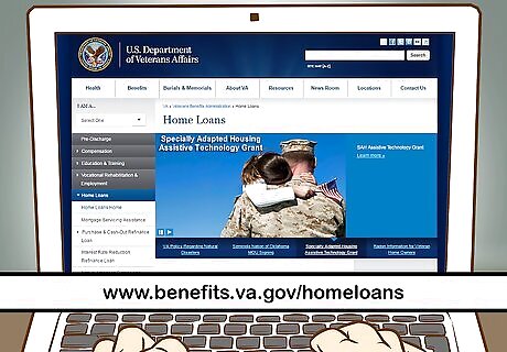 Look into the Department of Veteran's Affairs loan program. If you are a US veteran, you might qualify for a loan through the Department of Veteran's Affairs. VA loans are generally provided by private lenders, but a portion of the loan is provided by the VA. This means the lender will offer you more favorable terms. To qualify, you need to provide evidence that you served in the military, such as a DD-214 reflecting nothing less than an honorable discharge. The amount of your loan, and your eligibility, depends on the length of your service and your service commitment. Note that you may be eligible also if you served a minimum of six years in the Reserves and/or National Guards. VA loans do not have precise minimum credit score standards.
