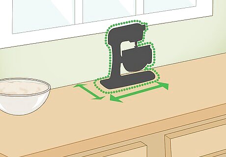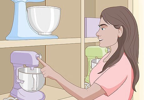 Consider your space and storage issues. Look around your kitchen and decide where you would keep a mixer. Determine if you have a large enough kitchen with a lot of counter space for a large mixer or a small kitchen where storage is an obstacle. Move some things around on your countertop to get a feel for how a large mixer would look. While some people don't like to have a lot of things on their countertops because it feels cluttered, other people love the look of upscale appliances all around the kitchen. Look in your cupboards to see if you have room to store a mixer. You will want it to be easily accessible. Mixers come in many different sizes. A stand mixer usually measures around 14”D x 8-½”W x 14”H (35.5.cm x 31.5cm x 35.5cm). A hand mixer will be approximately 8"D x 4"W x 6"H (20.3cm x 10.2cm x15.2cm).