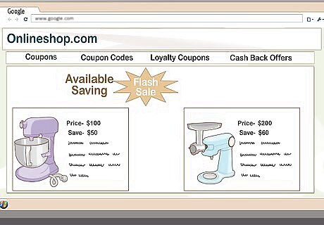 Watch sale flyers. Kitchen mixers are frequently on sale, especially during the fall holiday season. Be sure you compare apples and apples as there are so many different models to choose from. Many department stores and kitchen specialty stores issue coupons for discounts on your purchase. Look for coupons online, both on the manufacturer's website and on websites like RetailMeNot and Coupons.com.