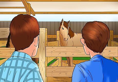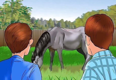 Bring somebody along with you to evaluate the horse. Make sure the person you bring along is knowledgeable about horses and can offer an objective opinion. They will be able to give you a second opinion and will be a good resource for questions you need answered. Also bring along a camera to make a video of the horse. This way, you can watch the video later at your leisure to help you make your decision.
