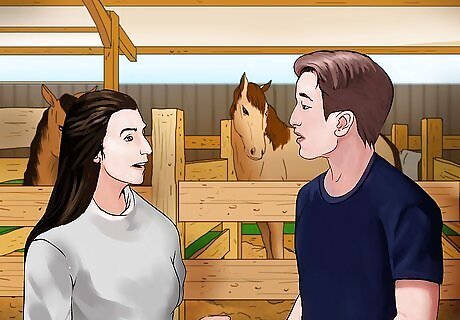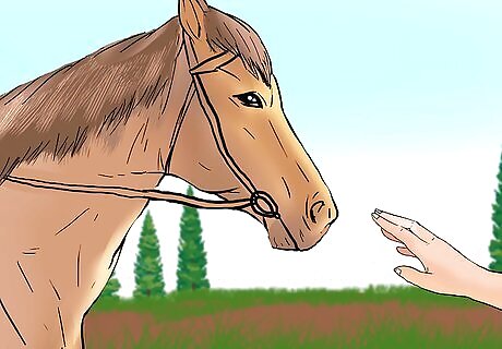 Schedule an appointment to see a horse. Before making your choice, you should have the chance to thoroughly evaluate a potential horse. This is the point at which you can gauge the horse's behavior, personality, and comfort with being a trail horse. If a seller does not want to let you spend any time with a potential horse, walk away from the sale. You should be able to get to know a horse a bit before buying it. A good private seller will be more than willing to help you spend time visiting with and riding the horse. They should want to evaluate you and make sure you are a good fit as well.
