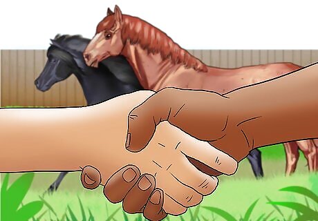 Talk to horse breeders and dealers. There are a variety of professionals in the horse world that are in the business of buying and selling horses. Talk to breeders and sellers in your area about your needs and see if they can provide you with a horse that is right for you. It may be more costly to buy a trail horse from a professional horse seller. Be cautious when buying a horse from a dealer or breeder. Their job is selling horses, so they may be overly motivated to sell you a horse that is not right for you. They may sell you a horse that will be difficult to train, has a history of issues, or cannot perform how you want it to.