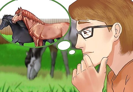 Think about appearance, physical ability, and conformation. Conformation is the structure and proportion of the horse's body. Though everybody wants a pretty horse with perfect conformation, this doesn't necessarily mean the horse will perform better than a horse that is less perfect looking. Determine what conformation or appearance flaws you can live with so long as the horse is a good trail horse. Having an idea of what you want before looking at horses will help you to more quickly assess whether a potential horse is right for you. Taking an experienced horse friend or even a veterinarian with you when you go to look at horses can help you catch conformation issues early.