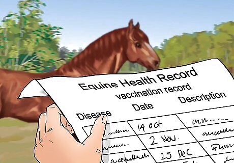Check the horse's medical history. Obtain a copy of its medical history from the owner, and ask your own vet to give the horse a physical. This will allow you to find out if it's in good health and whether there are any structural problems with its body. Your vet should also assess the horse’s eyesight as this is key in a good trail horse, as well as its heart, hearing, and musculoskeletal system.