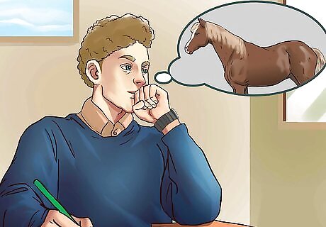 Analyze the horse's mannerisms and demeanor. See whether its posture is relaxed or uneasy. Evaluate if the horse can stand still, how it handles getting in and out of a trailer, and how calm it is during bathing and clipping. Make a sudden movement in front of the horse and see how it reacts. Stand at least 5 feet (1.5 m) away from it, in case it rears up or tries to bolt. If you can see the white of the horse's eyes, it's nervous or panicked.