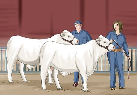 Find a livestock auction mart. It is usually best to choose local sale-barns to find what you're looking for, however there's nothing wrong with going for a distant auction mart to find some ideal cattle to purchase. Where you want to go depends on what cattle you are looking to buy, as well as the prices they are going to be selling them at. Some sale barns sell cattle at a cheaper or expensive price than others, and others sell more variety of breeds than others. If you're looking to buy some bred females or cow-calf pairs, the best auction to go through is a herd dispersal sale. This is where usually the best females are sold. Any other auction may be potential for you purchasing someone else's problems.